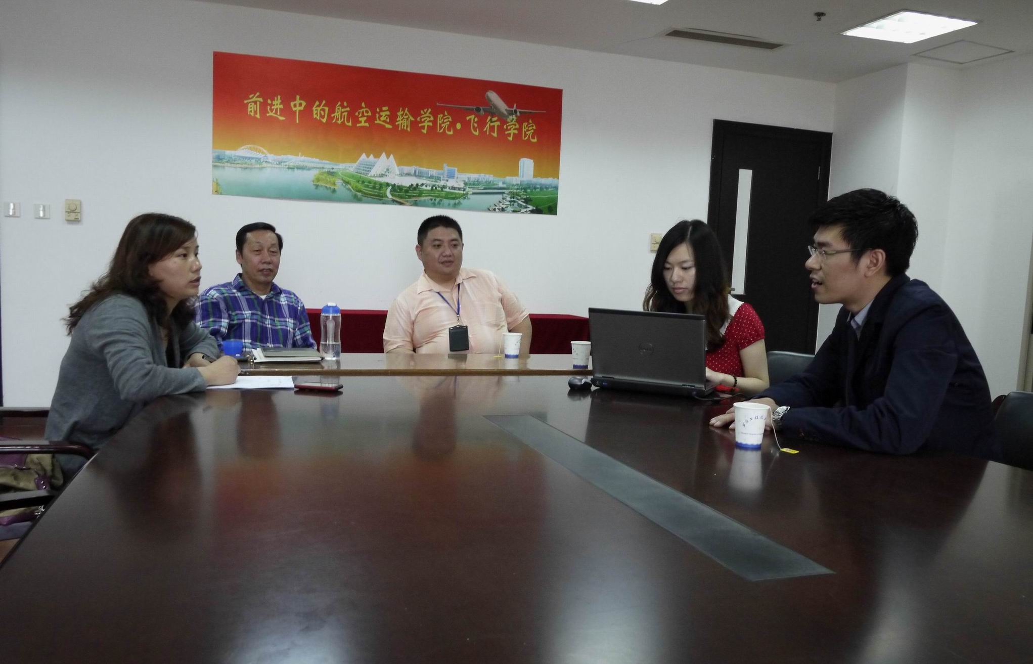 |  5月15日,航空运输•飞行学院与上海波音公司在学院会议室就校企合作事宜展开会谈。出席会议的有航空运输•飞行学院副院长陆惠忠老师,党总支副书记周慧艳老师,上海波音公司人力资源部员工关系主管许经理、招聘部薛经理等。波音公司薛经理向学院介绍了公司基本情况及长期发展目标。之后陆院长向波音公司介绍了我院专业设置及学生基本情况。 薛经理重点介绍了校企合作的一些设想及目标,指出公司十分重视人才培养,对于表现突出的大学毕业生,公司将作为骨干力量重点培养。其次公司技术力量雄厚,有来自西雅图的波音技术团队全程支持,对于学生技术能力的提升有很大帮助。第三,企业推崇开放式的企业文化,全力为员工打造发展平台。薛经理提到公司将在学校设立“波音俱乐部”,定期派教员到学校来进行机修方面的讲座并组织学生到波音公司机库进行参观实习。另外,公司准备在近期开展一场宣讲会,让学生了解企业并吸引更多优秀学生到上海波音公司工作。公司还为学生搭建平台,让学生在暑期到公司进行产学合作教育,以达到校企合作双赢的目的。 党总支副书记周慧艳老师表示学院将大力支持学生到上海波音公司进行实习,让学生在实习中不断成长,个人素质不断提升。其次,校企合作也为学院第二课堂提供更多机遇,通过第二课堂的学习和实践,让学生产生更浓厚的学习兴趣,为教学工作提供更多帮助。第三,学院非常欢迎像波音公司这样的优秀企业到学校来,与学院建立密切联系,开拓合作教育新渠道,使学院能够更好的培养民航事业应用型人才。