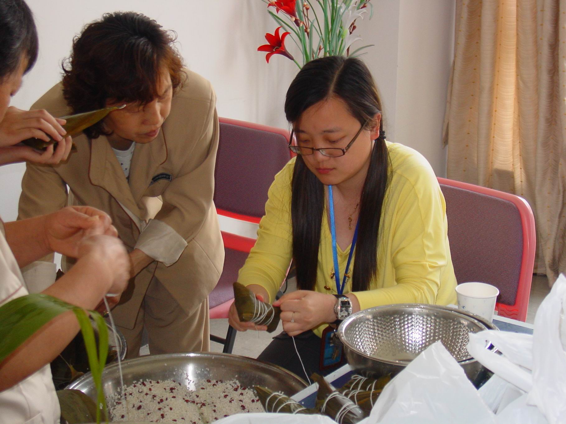 |   5月15日早上,电子电气工程学院“妇女之家”在实验楼1425举行了包粽子DIY活动。此次活动吸引了诸多女教职工积极参与,部分男教职工也热情参加了本次活动,活动一直持续到了下午16:00。 电子电气工程学院“妇女之家”为了更好地开展此次活动,妇女委员王红老师组织相关人员从准备粽叶、糯米、青豆等各种原材料到准备活动用的其他物品,事先做了大量的准备工作。本次活动还专门聘请了二位技术熟练的师傅全程负责指导参与包粽子DIY活动的各位教职工。 本次活动以“欢乐迎端午,包粽DIY” 为宗旨,采取“我包粽,我收获”的形式,鼓励广大教职工积极参与到活动中去。各位教工热情高涨,既享受了学包粽的快乐过程,同时又收获了自己的劳动成果,增进了教师们之间的友谊,提高了教师队伍的凝聚力。 |