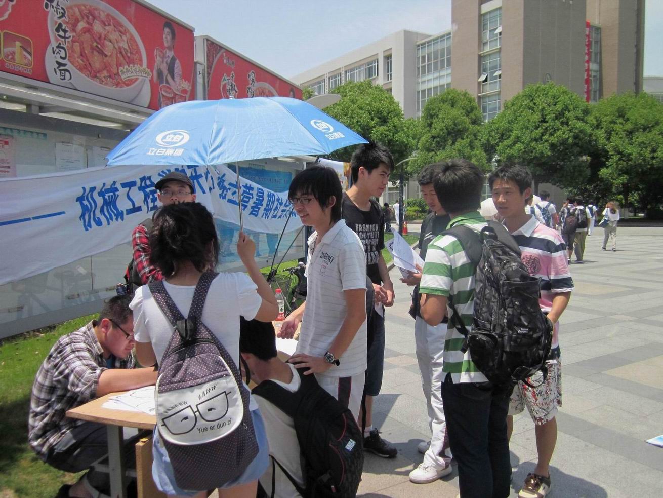 5月16日下午,机械工程学院在校大食堂门口举行2012年暑期“开心独立营”招募活动。我校学生处王明复处长前来指导,并在宣传横幅上签名,给予开心独立营活动以高度的肯定,鼓励大家把“开心独立营”这一品牌项目坚持办下去,越做越好。 开心独立营是我校机械工程学院与长宁区华阳街道共同合作开展的特色活动,致力于解决暑期双职工家庭孩子的生活与学习问题。从2008年起,活动规模日益扩大,我校已有百余人次大学生志愿者参与本活动,得到了学校领导和街道负责人的高度赞扬和支持。在独立营中,大学生教员们督促和协助小朋友们完成暑期作业,为他们带去丰富多彩的暑期活动与各种知识,并确保孩子们在独立营中的安全。同时,本活动也是产学合作教育的一项。 2012年暑期开心独立营即将开始。今年,我院依旧将招募范围扩展至全校,广招喜爱孩子、热衷教学的同学们,并从中进行面试、选拔,为孩子们挑选有热情、有爱心、有才能的优秀的大学生教员。 招募活动举行得相当顺利,不断地有同学前来咨询有关详情。活动现场气氛活跃,有意参加活动的同学登记报名。同学们纷纷上前在宣传横幅上签名,对活动表示支持。活动中共收取了76份报名表,机械工程学院分团委实践部将在第二天举办面试会,选拔合格的大学生教员。 |