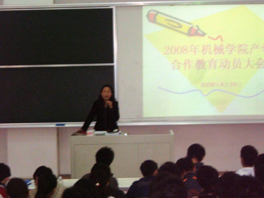 4月18日中午,机械工程学院在教学楼F120召开产学合作教育动员大会。党总支副书记虞蓉老师、合作教育专职教师及07级合作教育新生应邀出席了会议。虞蓉老师为大家介绍了合作教育的形成过程、发展历史及我校实行合作教育的目的及特色。同学们从中了解到了合作教育的意义、发展历史以及作为办学特点的我校合作教育发展情况。接着,合作教育专职教师赵晔煚就学院合作教育理论课的授课安排、合作教育的时间节点进行了布置。最后,虞蓉老师再次强调了合作教育的重要性及课程的意义。 赵晔煚 稿件作者:赵晔煚责任编辑:陈文琼