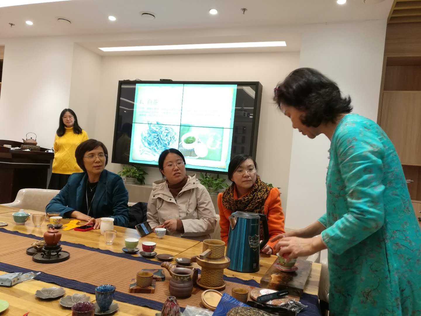 茶艺活动由国家茶艺技师黄梅老师主讲。随着和谐轻扬,古典优美的音乐升起,黄老师首介绍了茶的历史、茶的分类以及科学饮茶等方面的知识,增进了老师们对茶叶知识的了解,并充分感受到我国茶文化的博大精深。随后教授了生活中常用的泡茶技艺,如何运用选茶、辩水、选具、涤器、投茶等方法、技巧,沏泡出一壶好的茶汤。通过实践,老师们对用水量、水温、投茶量、浸泡时间、冲泡方法等方面又有了深刻的认识,并品尝了自己冲泡的白茶、红茶和岩茶。