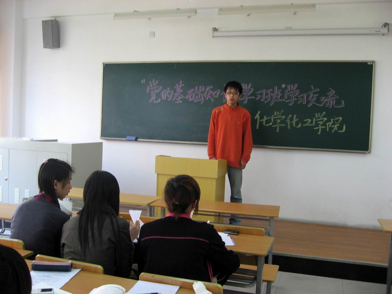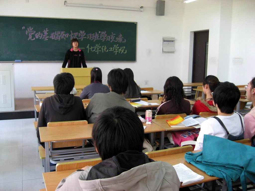 近日,化学化工学院举行了学生入党积极分子党课学习交流会。会上,参加学校第四十二期《党的基础知识培训班》的入党积极分子首先对“党的性质和历史使命”、“党的组织制度和纪律”两大方面交流了自己的学习心得。随后,大家又针对“如何进一步理解党的性质,指导思想”、 “如何进一步学习领会十七大报告精神”、“如何端正入党动机”、“怎样做一名新时期的学生党员”等问题进行了热烈的讨论。 同学们纷纷表示本次党课学习体会颇深,不仅进一步深刻了解了党的历史、性质和组织制度等,更明确了新时期祖国对党员的要求。作为一名学生入党积极分子,在积极向党组织靠拢、在学习生活和工作中严格要求自己的同时,更要努力做到行动和思想上同时入党。