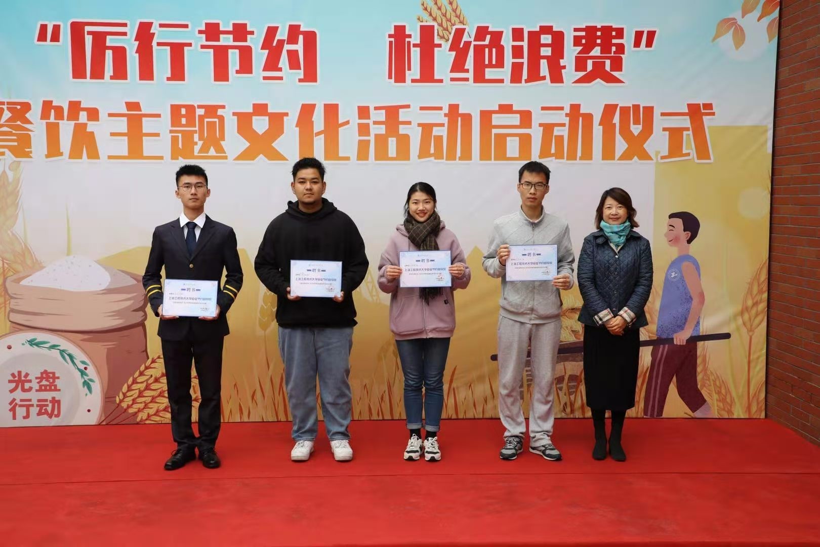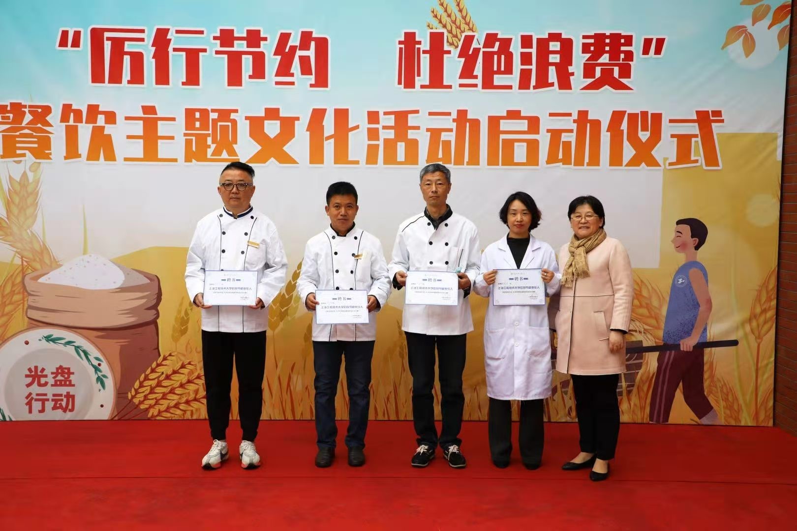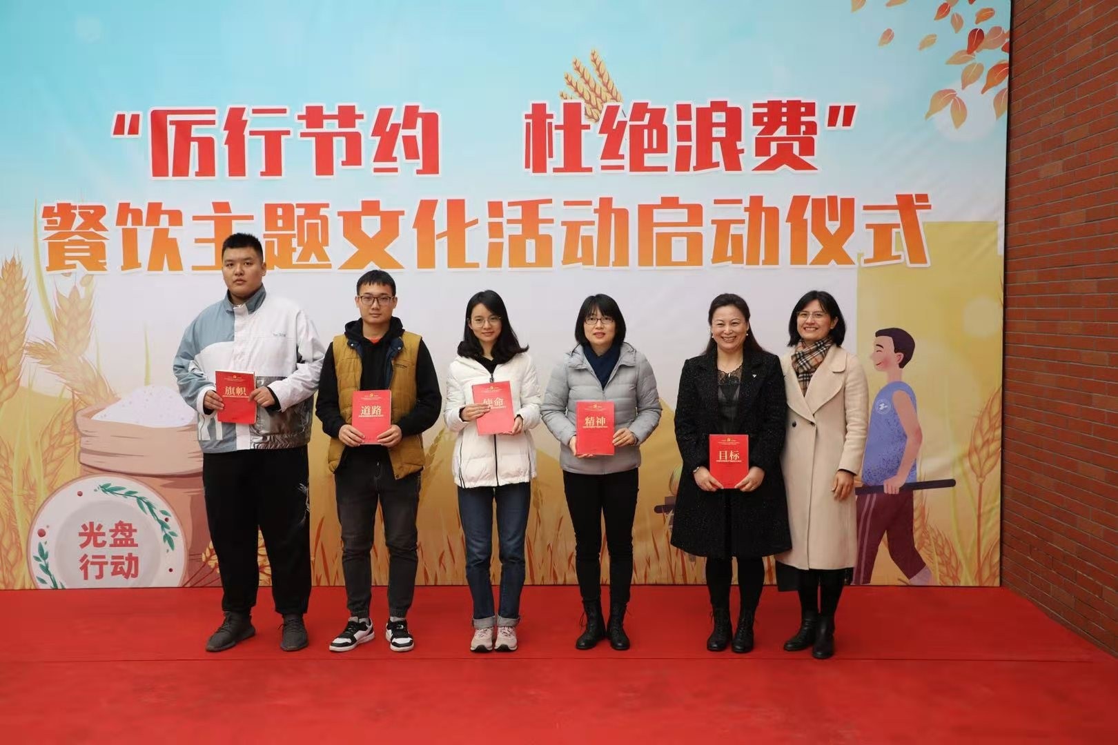 学生工作部(处)长朱蓓,机关党委副书记徐建华分别为学生代表和教职工代表和颁发了“食堂节粮督导员”聘书,党委宣传部副部长万慧琳为师生代表赠书,后发中心党总支书记黄文洁为食堂员工代表颁发了“后厨节粮责任人”聘书。后发中心副主任高丹介绍了餐饮条线落实厉行节约要求的具体做法。