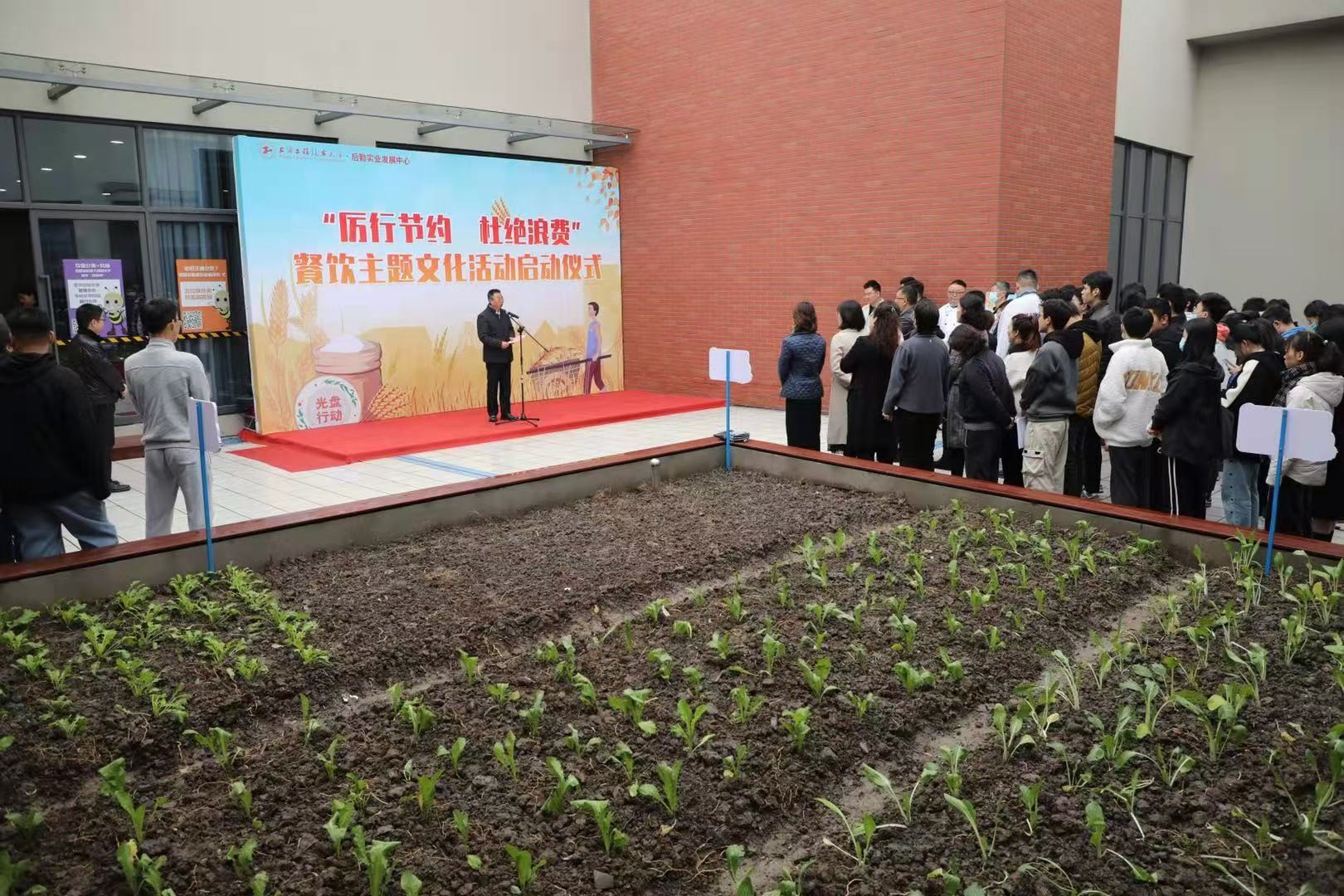 副校长姚秀平为学校首个“节粮教育试验田”揭牌。他号召全体师生树立崇尚节约、科学饮食、健康消费的生活理念和饮食文化,坚决杜绝浪费行为,并提出三点希望:一是希望广大师生从自己做起,在日常生活中做节粮爱粮的先锋;二是希望后勤不断完善长效机制,并贯彻到餐饮工作的各个环节中去;三是希望各部门密切合作,协同创新,推动节约型校园建设上新台阶。