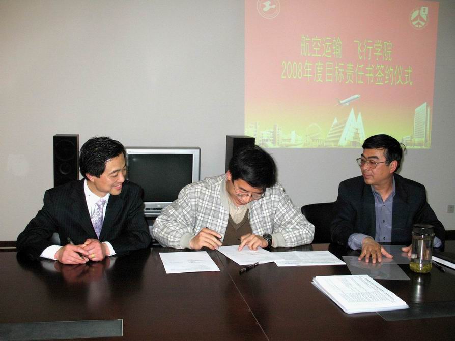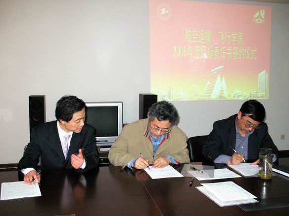 4月29日下午,航空运输学院/飞行学院召开全体教师大会,进行了2008年度党风廉政建设责任书和2008年度目标责任书的签约仪式。学院院长、党总支书记与学院党政副职、各系、室主任分别签订了目标责任书。此次严肃而慎重的签约仪式,是两院党政领导积极响应学校号召将目标责任落实到个人的有利举措,也是学院领导在积极推进教学与科研工作进程的有效手段。 稿件作者:赵鸣责任编辑:陈文琼
