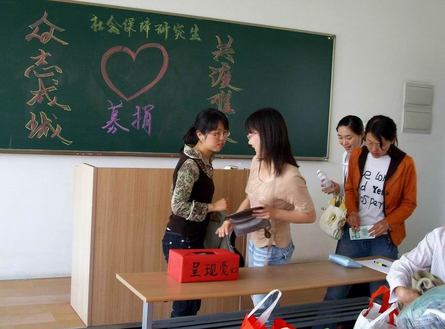 社会保障专业研究生班为四川灾区募捐活动于 通过此次活动,充分体现了当代大学生的良好精神风貌,体现出我校广大研究生的拳拳爱国之心和良好的思想道德水平。我们坚信,在党中央的坚强领导下,全国人民一定能众志成城,战胜灾难。