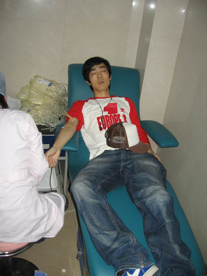 镜头三:凝血不忘献血心 有这样一位同学,十分钟的献血过程,她用了三十分钟。血液因为血管壁和自身血液粘稠度的影响而流动缓慢,甚至在一段时间内血液停止了输出。就是在这样的情况下,她还坚持要献完自己的一片爱心。最终,这位同学献出了150ML献血,但这种执着的奉献精神深深地震撼了在场的每一个人。 镜头四:自告奋勇表决心 在清晨献血队伍出发前,带队老师发现队伍中多了不少同学,了解后知道,因为四川大地震,不少同学临时加入了无偿献血的队伍中来。爱心不分先后,决心支持生命。在中华民族最需要团结互助之时,我们的同学毅然加入到了关爱他人的洪潮中来。精神可嘉,勇气可叹也!