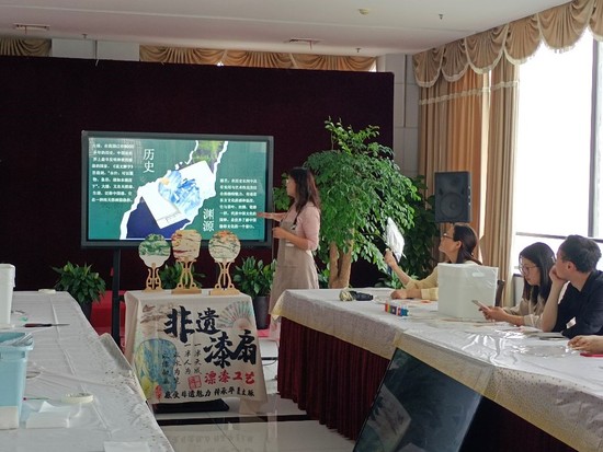 丰富教师的校园文化生活,提升教职工美育能力,6月5日中午,数理外国语联合工会在行政楼19楼大厅举办端午非遗漆扇DIY体验活动,40余位教师参加了本次活动,感受了非遗漆扇的艺术魅力。