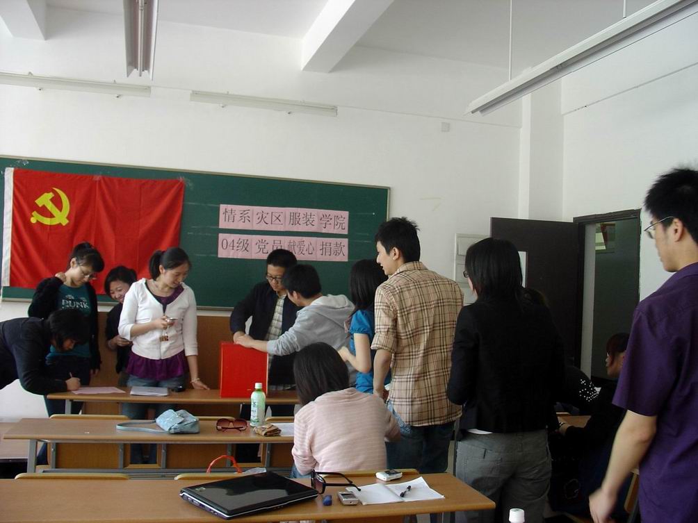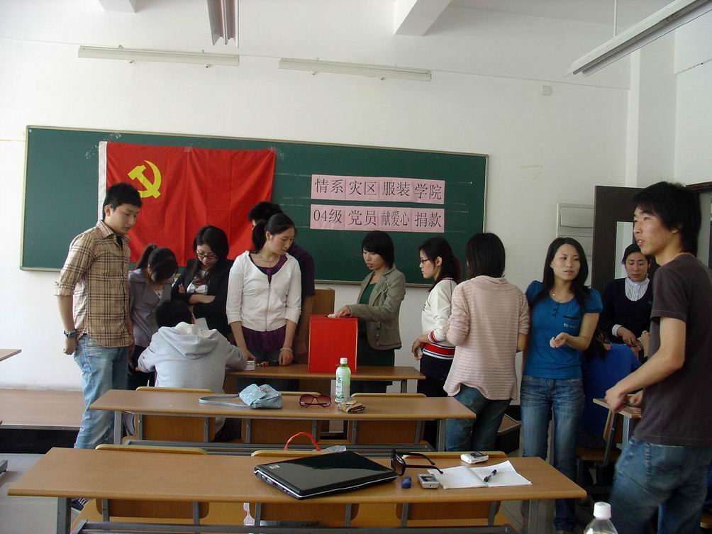 5月16日上午9:30,服装学院全体毕业生党员在辅导员老师的组织下,紧急召开党员会议。会上同学们自发提出为四川赈灾的捐款,为重建四川献出自己的一份力量。国难当头,众志成城!现在,我们的同胞正在经历着丧失亲人、无家可归等等我们无法想象的痛苦,我们无法为他们分担这一切,但却有能力给他们一些帮助。在鲜红的党旗下,捐款仪式进行的简单却又隆重,红色的捐款箱里,是我们作为党员应尽的责任,更是身为炎黄子孙的一片片赤诚之心!汶川加油!四川加油!中国加油!简短的捐款仪式总共募捐到善款3340元。 在此,我们呼吁大家,伸出我们的双手,奉献我们的爱心,及时捐赠,为灾区的救援和重建贡献自己的一份力量!让我们一起勇敢行动,于危难中托起爱的方舟,帮助受灾同胞渡过难关! 稿件作者:夏纯责任编辑:陈文琼