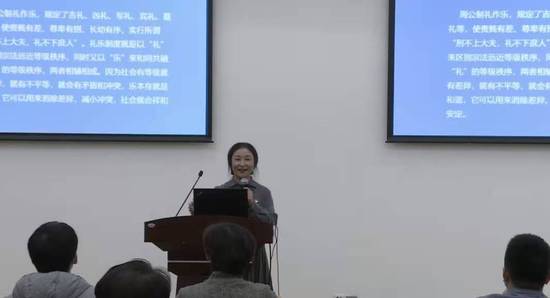 党课首讲教师为学院党委副书记、院长谢红,谢老师以“华夏衣冠制度的人文精神”为题开讲,她总结了西周礼乐制度、汉代帝国意识形态、魏晋玄学思潮、隋唐“天道自然”、宋朝“理一分殊”的集权思想等古代制度及思想意识对服饰文化的影响,为学员阐明了我国纺织史上各个时代的“文化符号”。