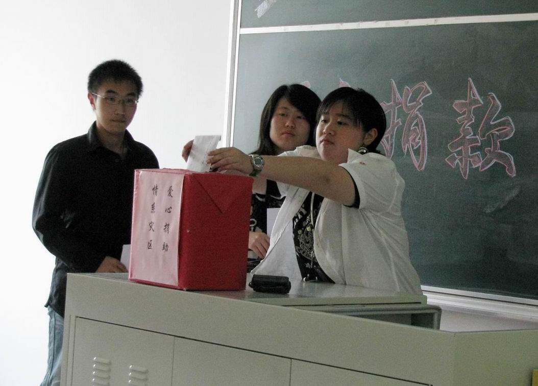 为表达对灾区人民深切的同情和关爱,在管理学院分团委学生会的倡议和带领下, 地震发生后管理学院分团委密切关注和积极宣传地震灾情。通过这次的募捐行动,再次体现了管理学院学生“一方有难,八方支援”的奉献精神。同时,同学们还提出“要与灾区人民风雨同舟,心手相连,共渡难关”的口号。 管理学院 顾翊 | |