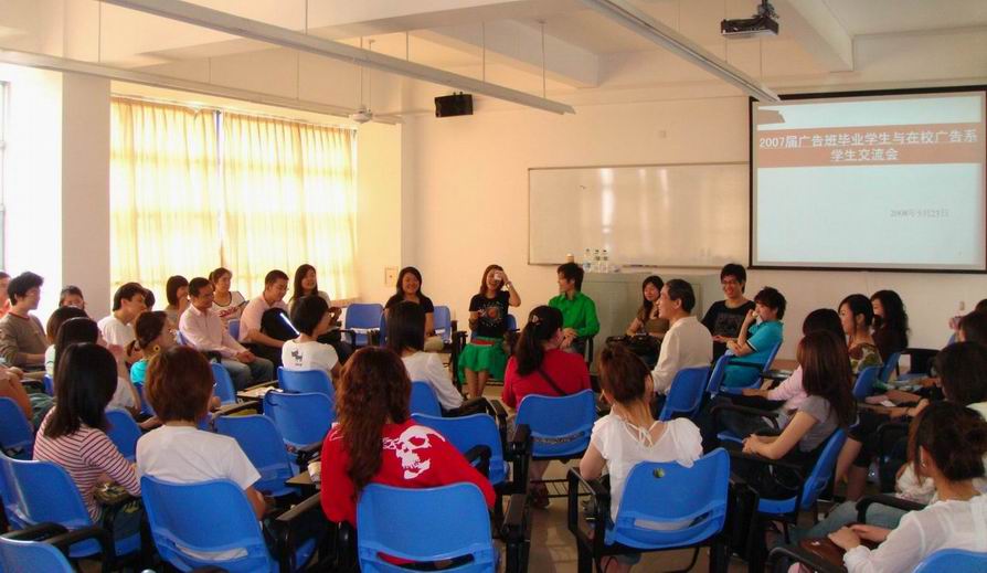 交流活动采取的是圆桌互动的形式。交流会上,七位毕业生依次将自己的实习和工作过程中所积累的经验以及学到的知识与学弟学妹们一起分享,同时也热情认真地回答了在校生就实习环境、职业规划、面试技巧、工作技巧、发展方向等方面所提出的问题,进行了互动交流。本次面对面的交流活动为学院广告系在校生上了一堂生动的职业规划课和就业指导课,使象牙塔内的学生对自己今后的发展方向有了初步的定位,明确了学习目标,为今后踏入工作岗位奠定了基础。