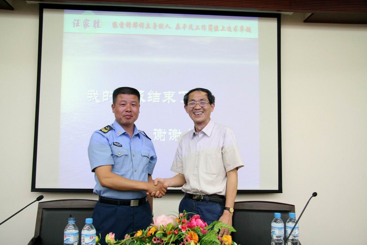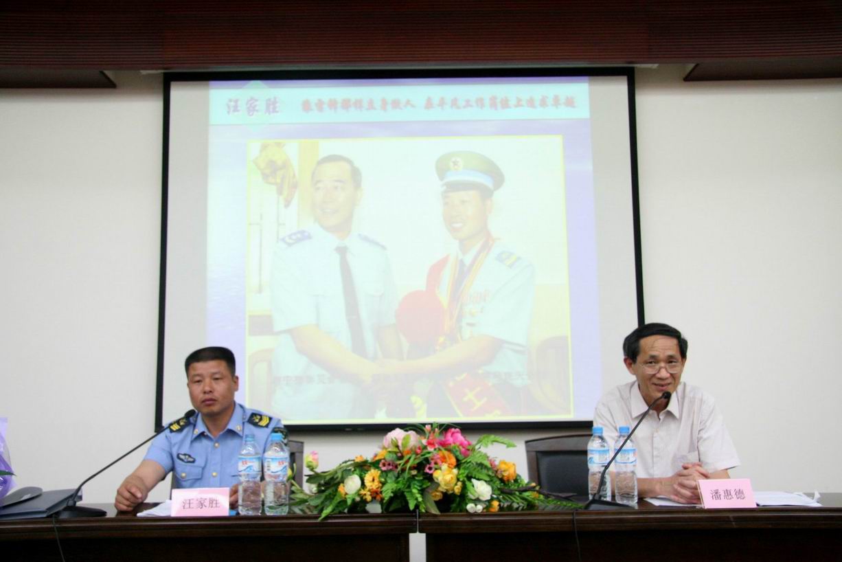 汪家胜同志在2003年荣获了全军"爱岗敬业、模范士官"的光荣称号,是新时代的雷锋式汽车兵。在部队服役的17年里,曾经十多次被军以上单位评为"红旗车驾驶员"、"优秀志愿兵标兵",先后两次受到军委四总部的表彰,两次荣立二等功和一次三等功。现在他已经是空军部队同行业兵中荣誉最多、贡献 汪家胜同志的先进事迹介绍让我们在这些朴素语言中对雷锋精神有了更深刻的领悟,他以亲身实践启示我们:学雷锋,不是标签,不是口号,要付出,还要有能力水平,更要具备良好的心态,敢于吃苦,舍得吃亏。汪家胜同志正以自己的实际行动,诠释新一代雷锋精神的深刻含义。在整个报告中,学生们听得聚精会神,在互动交流环节现场氛围活跃。