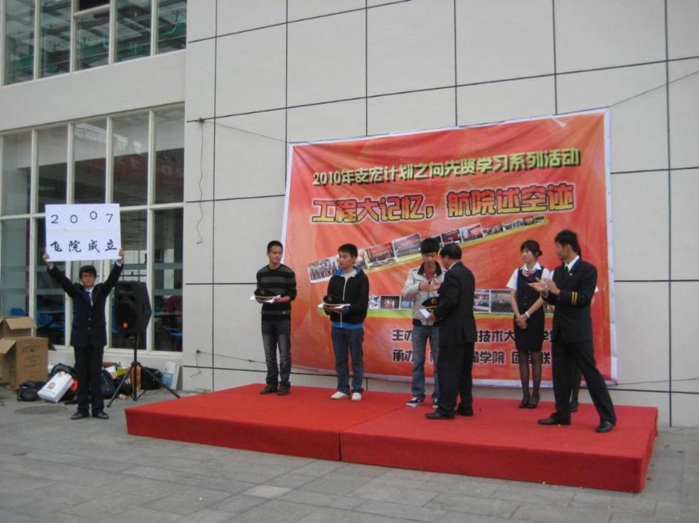 |     10月20日中午,在大食堂门口,航空运输学院举办了2010学年上海工程技术大学“志宏计划”之“工程大回忆 航院逐空迹” 活动,参加活动的有:分团委书记林小希老师,杨永昌教导员和学生代表。许多工程大的同学也积极地参与其中。 活动开幕式让人想起了学院成立时剪彩和揭牌仪式的场景。之后,由杨永昌教导员讲话。在台下一片掌声中,分团委书记林小希老师宣布志宏活动正式开始。由航空运输学院的学生为大家演唱了航院的院歌,台下的同学也纷纷跟唱,唯美的歌声响彻了整个校园。在欢歌后,又进行了下一个有奖竞猜环节,主持人提问了有关航院院史的问题。当一个个问题被台下的积极热情的同学正确解答后,主持人也为他们颁发了奖品——竹蜻蜓。接着,主持人简单讲述了航院英雄的事迹:飞行学院吴俊见义勇为负伤;航空器械维修刁伟枫捐献骨髓等等。学生代表还模拟了当时的真实情景,同学们动容于这样一个真实发生在身边挽救脆弱生命的事迹,亲生感受到这种默默无闻下坚定的信念和无私的奉献。通过他们感人的事迹,让更多的人伸出他们的手,献出一份自己的爱,挽救那些脆弱的生命。活动最后以放出手中的竹蜻蜓完美的拉下了帷幕。 此次活动英雄光荣事迹以及航院院史展示活动仅是在此开个头,目的是希望学生们能够多一份爱的奉献,多一份爱的牵挂,努力成为一名合格的民航人。 | | | 稿件作者:航空运输学院 责任编辑:陈文琼