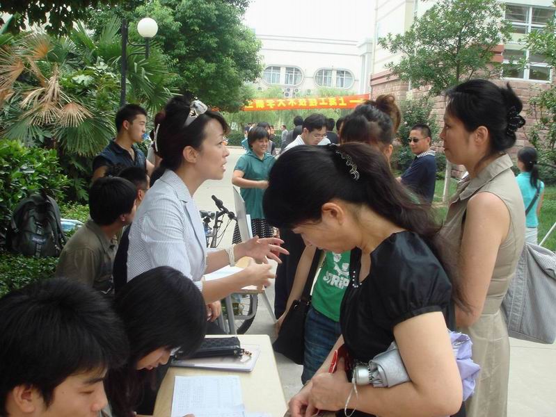 23日、24日上海工程技术大学迎来了08级新生,服装学院的学生党员、学生干部以及志愿者们自愿承担起接待新生的工作。在学院办公室的组织安排下,志愿者们活跃在校园的每一个角落,身上的衣服被雨水、汗水浸湿了,但是可爱的志愿者们始终微笑着奔走在人群和行李之间,有条不紊地指引新生到指定的宿舍楼,并热情地帮忙提行李。在新生宿舍楼门口,服装学院还细致贴心地设了“服装学院班主任(学生党员)咨询站”,学院的辅导员老师们以及学生党员给新生分发校园卡以及日程安排表。“咨询站”的成立可以方便地为解决新生以及家长的各方面疑问,在生活上给予了一定的帮助。有些提早到达的新生没有领到校园卡,学生党员还热心地把校园卡送到寝室,生怕新生没有校园卡在食堂吃饭不方便。