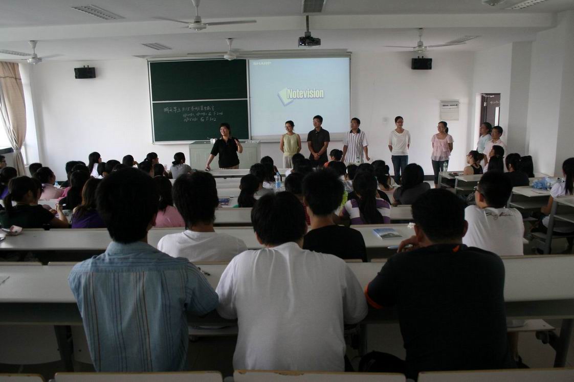 8月26号是新生入学的第二天,艺术设计学院先由辅导员老师做了军训动员,随后学院的党总支书记潘惠德老师,院长马新宇老师,党总支副书记何志琴老师,副院长许传宏老师和吴亚生老师以及学院学生办公室的各位辅导员老师,来到了各系所在的教室,看望了我们学院的08级新生于新生见面。