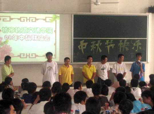 |  9月12日下午,城市轨道学院在教学楼F320举行了外省市新生联谊会,把来自全国各地的新生朋友们聚在一起庆祝即将来临的中秋佳节。学院党总支副书记徐建华代表学院领导给大家带来中秋节的祝福。参加联谊会的还有来自各年级辅导员朱文良,万慧琳,王泽军,马建立,以及学生党支部书记谢秋老师。 联谊会开始时,徐建华老师欢迎08级110多名外省市同学加入城市轨道交通学院,并且希望外地生能早日融入上海,融入学院,在今后学习、工作、生活中乐观向上,积极进取。接下来分团委书记万慧琳老师带领同学们做的“雨点变奏曲”把联谊会的气氛推向高潮。大一辅导员朱老师也向在座的外地新生带来节日的祝福。随后,来自不同省市的同学们到讲台前面做了自我介绍以及家乡特色的介绍,并且以各自家乡为单位即兴表演了节目。 学院为外地学生准备了丰富的食品,大家在轻松愉悦的气氛下体会着轨道学院领导老师带给学生的温暖和关怀。相信外地新生一定会在轨道学院开始另一段丰富而有意义的大学生活。 |