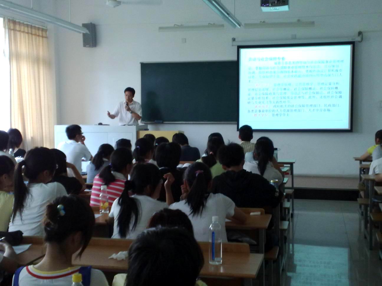 为使新生更好地了解和把握本专业的特点,社科部领导精心组织专业老师,就《劳动与社会保障》和《公共事业管理》这两个专业的特点、课程设置等内容向广大同学作了介绍。在曾教授的详细解说下,《劳动与社会保障》专业与《公共事业管理》专业的新生对专业特点、课程设置、就业前景及学士学位这四方面内容有了初步的认识。同时,他要求新生在四年中好好学习专业知识,鼓励学生在暑期参加专业社会实践,增加工作经验。这样才能为将来成为一名具备良好的组织、协调、沟通和控制能力的管理人才奠定扎实稳固的基础。专业介绍会结束时,曾教授精彩的讲座博得了在场同学们热烈的掌声。