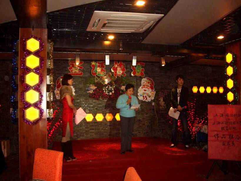 2008年12月24日晚,服装学院党政领导携设计系和艺术系骨干教师参加了与松江区塔汇针织厂联合举办的校企联合圣诞晚会。晚会伊始,由服装学院院长林兰天教授 和上海市塔汇针织厂虞剑芬厂长致词。林院长表示校企联合的方式很好,有利于实现服装行业产业链与专业链的对接,预祝今后服装学院与塔汇针织厂的合作更加深入,更加成功。虞厂长在讲话中认为校企合作提升了企业产品的档次和竞争力,使塔汇厂在这一次的国际金融危机中立于不败之地,订单不减反增,业务蒸蒸日上。接下来由服装学院服装表演与策划专业时装模特表演了服装学院与塔汇针织厂联合发布的作品秀,热情的虞厂长还精心准备了许多文艺节目,圣诞晚会在热烈欢快的气氛中进行。 |