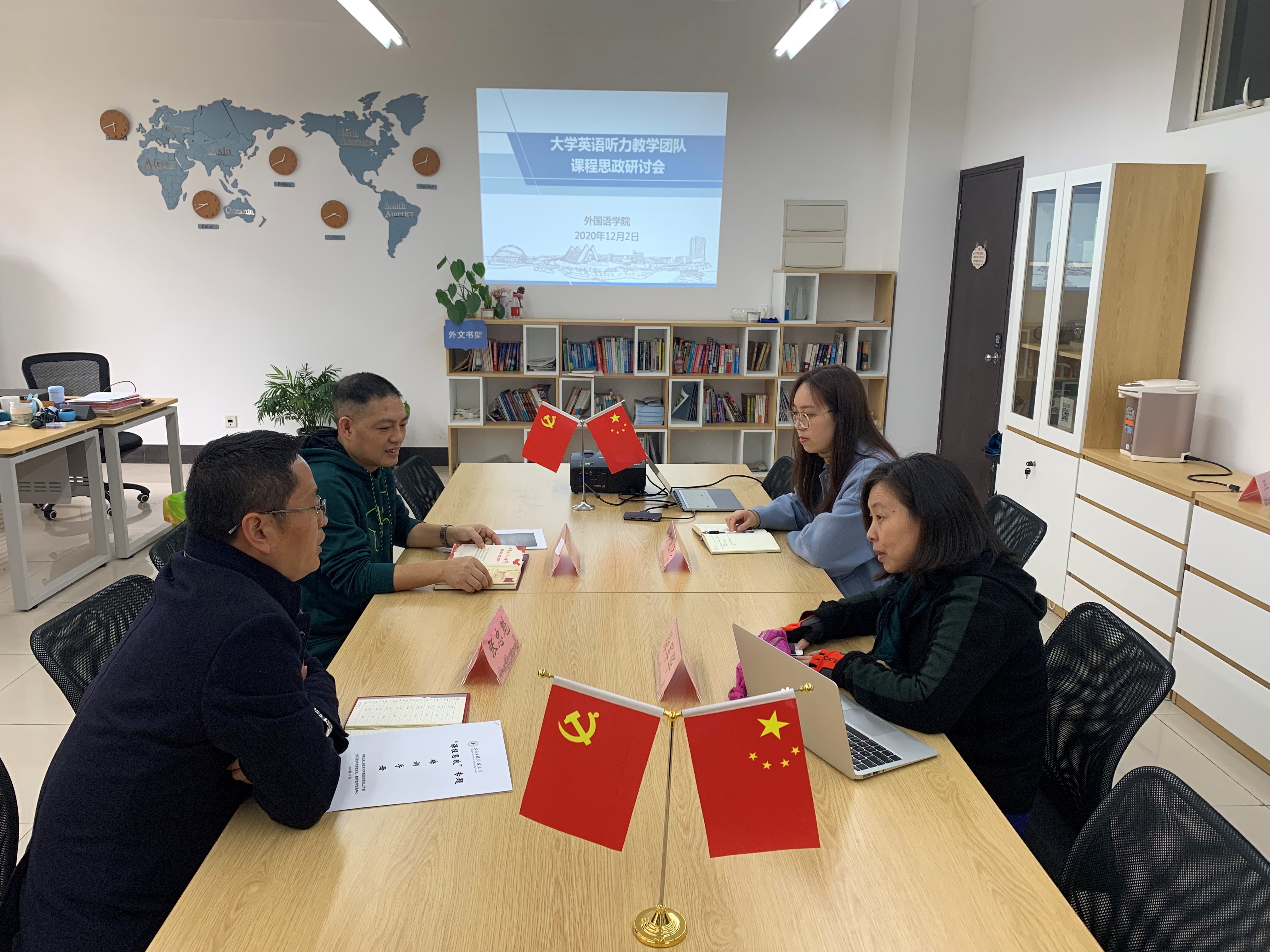 12月2日,大学英语听力教学团队在教学楼D111举行课程思政研讨会。会上,老师们就线上学习的“课程思政”理论、“新文科”建设精神以及课程思政教学能力提升三部分内容进行了回顾和交流,并立足团队教学实践,围绕如何实现立德树人根本任务,对如何将价值塑造、知识传授和能力培养三者融为一体开展学习研讨。