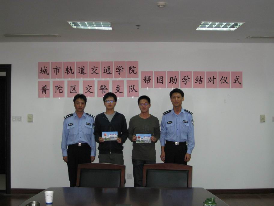 在帮困结对仪式上,辅导员万慧琳老师向在座的学院领导和民警同志简要介绍了学院两位受助同学的在校情况。两位受助学生也向普陀区交警支队的民警同志介绍了自己近一年来在学校的学习生活情况,他们表示一定会加倍努力学习,珍惜机会,将来回报社会。学院党总支副书记徐建华老师非常感谢普陀区交警支队对学院困难学生的帮助,认为帮困助学对学生不仅仅是一种物质上的资助,更重要的是给他们精神上更大的鼓舞,他希望两位学生不仅要把压力转化为动力,更要从思想上积极要求上进,做一名对社会有用的人。 普陀区交警支队的黄警官在听了学生的介绍之后也倍感欣慰,特别是对受助学生利用假期主动到社区做义工的表现和服务社会的心表示赞赏,黄警官希望他们将来踏入社会之后能始终保持一颗感恩的心。 学院党总支书记