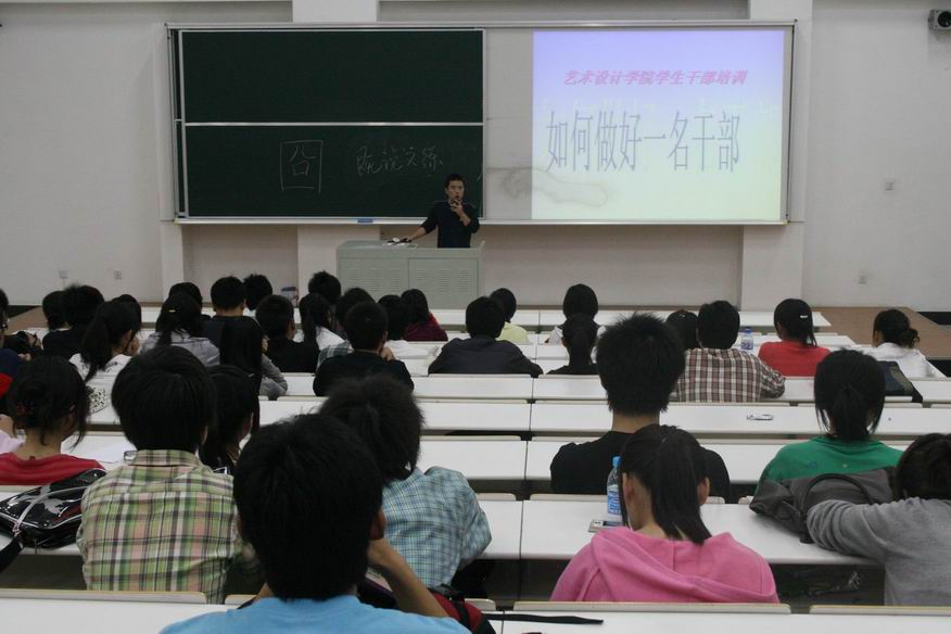 |  10月15日晚上8:00,艺术设计学院团学联在F420教室举办了本学期的第一期学生干部培训。学院团学联中刚刚走马上任的各部正副部长以及各部门干事参加了这次的干训,由艺术设计学院分团委书记程昭老师主讲。 在干训中,程老师着重对于 “学会做人”;“学生干部要细心、耐心、责任心”;“找准自己在团队中的地位,不越位、不错位、不缺位”;“学生干部应该具备的六个能力”;“合理安排自己的时间,做到学习工作两不误”;“学会协作互助”;“努力树立团队品牌,提高核心竞争力”等一些关于学生干部的问题进行了论述。在讲话中,程老师用实例列举出了学生干部在平时工作中的不足之处,并指出了改进的方法。 由于参加干训的大多是团学联新任部长和副部长,程老师特别指出,作为一名学生干部对于自己来说是一个提高自我价值的机会;对于同学们来说,学生干部应当为同学服务奉献自己;对于老师来说,学生干部要成为一个好帮手,以此来提高自己的实践能力。 艺术设计学院团学联本学期的第一次干训内容言简意赅,虽然时间不长,却给了学生干部们做人做事方面的很多启示。 艺术设计学院团学联记者团 |