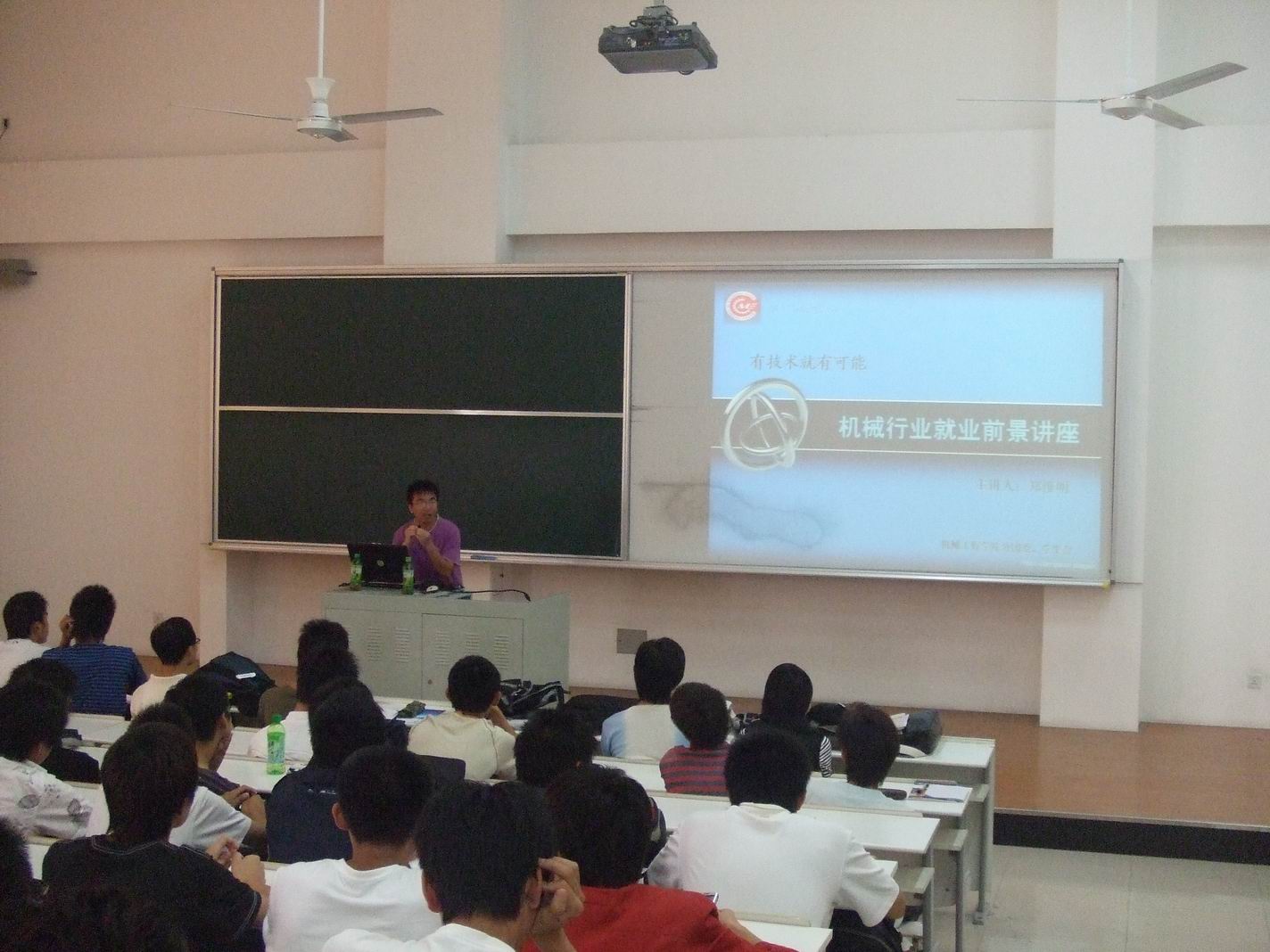 10月17日中午,机械工程学院在教学楼F420举行了机械工程学院读书节系列活动之“我的未来我做主”机械行业就业前景讲座。郑维民老师担任主讲嘉宾。 在讲座上,郑老师用生动而形象的例子说出了中国工业发展的现状,并鼓励同学们努力学习,为振兴中国而奋斗,并给予我们许多课堂上学不到的资料,让我们看清自己专业的前景。讲座起到了十分积极的作用,在讲座后同学们的热情久久不能散去,纷纷围绕着郑老师提问求答,场面十分热烈。 稿件作者:强晓坚责任编辑:陈文琼