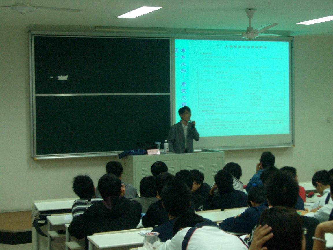 |  2008年11月6日晚上18:00,航空运输学院在F310举办了 “英语四、六级考前辅导讲座” 由我校基础教育学院叶红卫老师主讲。虽然外面下着小雨,但同学们还是依旧踊跃,其中包括一部分大一学生,教室内座无虚席,还有一些同学站着听完了整场讲座。 讲座中,叶红卫老师准备的ppt不仅仅是理论方面的内容,其中还穿插着各种有趣的例子和各类图片资料,十分贴近同学们的生活。老师生动形象的讲解和同学们产生了共鸣,千奇百怪英语标语的搞笑错误,引发了阵阵笑声,不仅活跃了教室里的气氛,还充分吸引了同学们的注意力;例句、典型错误的仔细讲评,纠正、阅读解题技巧的传授以及新题型的解题方法使同学们受益匪浅。 叶红卫老师提供了08年上半年四级考试的真题给同学们作为参考资料,结合ppt进行分析,并向同学们推荐了有效的练习听力的网站。整场讲座在轻松愉悦的气氛中结束了,叶红卫老师预祝大家在年末的四级考试中取得好成绩! |