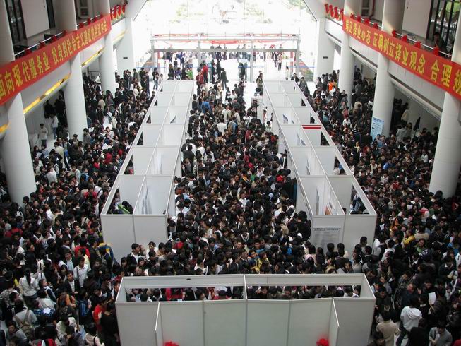 此次招聘会正式开始于下午13:30,但还没到中午12:00,图文信息中心二楼的门口就已经排起了两条长长的队伍,不少同学已经在那里等候。招聘会现场,各个单位都介绍本单位特色并说明所需求的专业和人才类型包括汽车,航空,电子,机械等方方面面的技术性需求。同学们纷纷向自己感兴趣的行业或者专业对口的单位进行询问与了解,一番慎重考虑之后投出自己的简历。 参加此次招聘会的大部分都是大四学生,大家明白即将要踏入社会。即将面临残酷的竞争。而最近危及全球的金融海啸,也增加了不少大二大三对未来就业的关注程度。同学们都报以很高的积极性,招聘会现场气氛热烈。