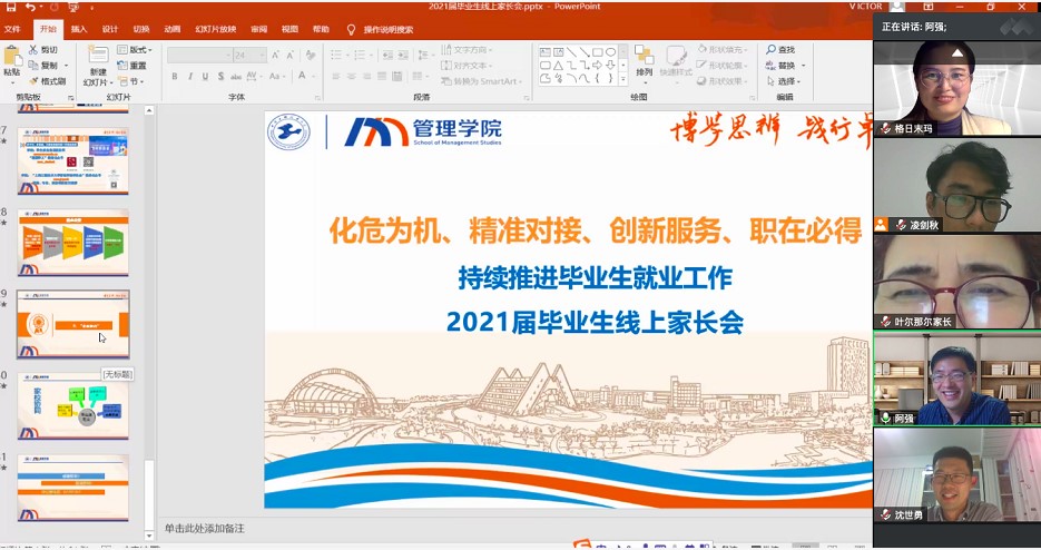 此次系列线上家长会大大促进了学院与毕业生家长的双向沟通,家长们进一步了解了学院就业工作的开展以及就业帮扶具体举措,老师们也对学生家长的想法和态度有了更深入的了解,这为2021年毕业生就业工作的顺利开展奠定了良好基础。毕业生家长们也表示会配合学院做好学生就业工作,帮助学生树立正确的择业观,更加顺利地度过就业季。