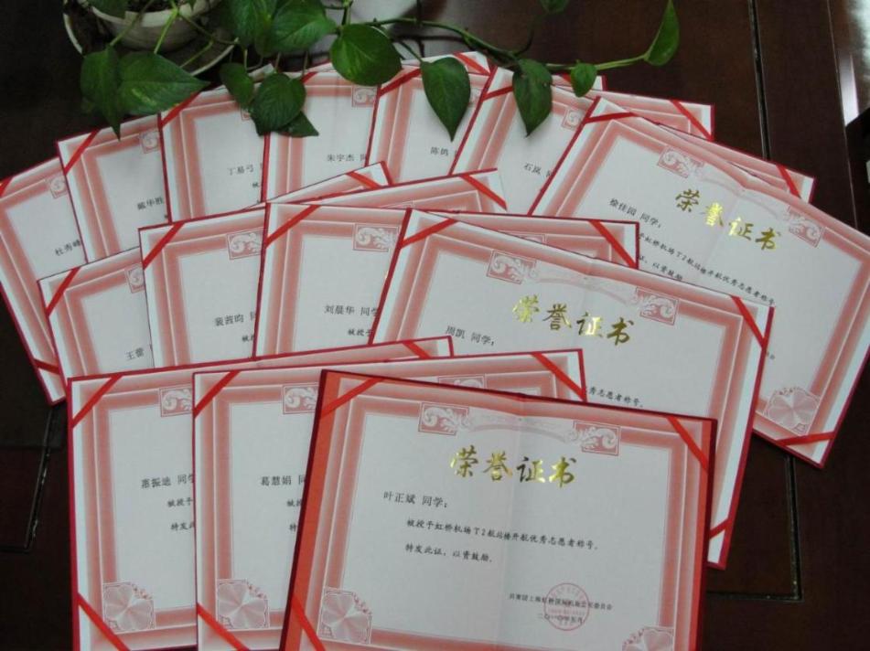 航空运输学院刘晨华等14位学生被虹桥机场评为首航优秀志愿者