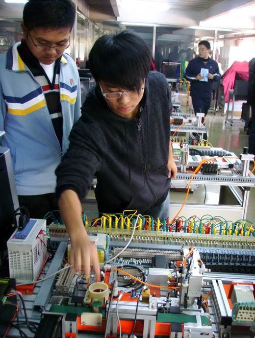 | 为培养德、智、体全面发展的高技能人才,高职学院机电工程系在教学上坚持贯彻理论和实践相结合的原则,注重理论课和实训课间的滲透,倡导适应专业理论与技能训练“一体化”的教学模式,为提高学生分析问题、解决问题的能力以及创新应变能力,机电工程系积极备战“星光计划”,希望能借助这一平台,促进工学结合人才培养模式的改革与创新,培养可持续发展的满足企业需求的高技能人才,并通过大赛积累经验,为参加全国职业技能大赛做准备。 11月14日下午12:30,高职学院机电工程系创新型兴趣小组活动正式启动, 活动策划实施 了“自动化生产线专业技能兴趣小组”、“机器人专业技能兴趣小组”、“电子设计组装专业技能兴趣小组”、“维修电工专业技能兴趣小组”、“钳工专业技能兴趣小组”等五个创新型专业兴趣小组。各小组分别确立了项目的负责人,制订了活动的计划和目标。各兴趣小组利用课余时间结合教学内容开展第二课堂教学活动,在专业教师的指导下使学生拓展专业知识面,加深对所学知识的理解和实际应用,提高学生的实践和动手能力。 各专业兴趣小组通过老师推荐、学生自己报名,报名人数已达到200多人次(中高职学生)。  此次活动参加的学生个个精神焕发,人人兴趣盎然。尤其是曾经获得过全国一等奖的自动化生产线项目的实训室内拥挤着三、四十个学生,神情专注地顷听着宁宗奇老师和陆勤老师的讲解,不时地能听到他们提问、与老师互相讨论、交流的声音。当同学们来到自动生产线的现场时,尽管已经历时二个多钟头,但同学的兴趣有增无减。有人说:兴趣是成功的老师,相信第二课堂能给他们带来知识、增进了解。使大家有所收获和提高。 通过本次创新型兴趣小组活动,同学们能进一步巩固所学课程的内容,加强理论与实际的联系,能综合应用已学课程的知识来使用有关技术资料,完成各专业的操作、维护方面所必须具备的基本技能训练,提高分析和解决工程实际问题能力、更能培养同学们的动手能力、创新能力、协作能力和进取精神。 |