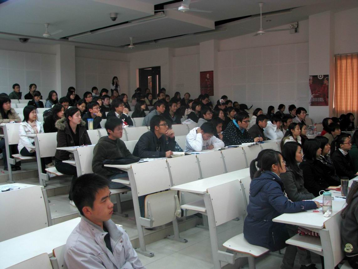 硕大的阶梯教室内座无虚席,甚至还有一些同学没有位置站在了教室的过道内。招聘会开始时,可以看见那些经历了投简历失败的大四学生多了一分谨慎,对于演讲者的提问持保守态度。但相比之下,演讲者出色的演讲还是让这些谨慎的“兔子”走出了自己的“兔窝”,现场的气氛也开始变得活跃了,台上台下的互动也渐渐变得频繁。