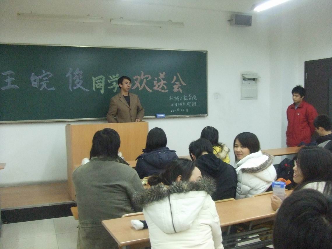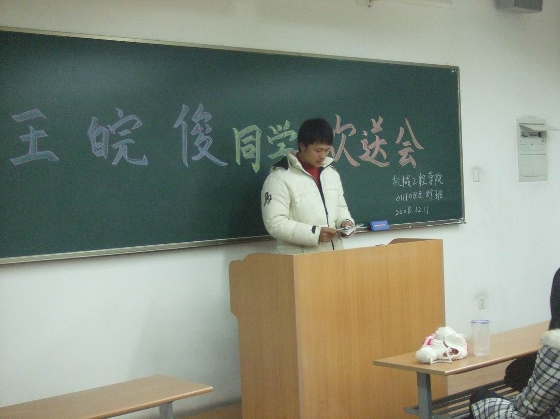 欢送会在王皖俊同学的入伍感言中拉开了序幕,“短暂而又难忘的大学生活给我留下了深刻的印象,即将到来的军营生活将激励我继续奋发向上……”一席话道出了他对大家的不舍之情和军营生活的向往之心;接着,老师和同学们纷纷为他献上祝福,祝愿他在部队里学习好、生活好,在新的旅程里大展宏图,报效祖国,为学校争光添彩; 最后,大家起声合唱《朋友》,辅导员 欢送会在依依不舍和祝福声中结束。 | |