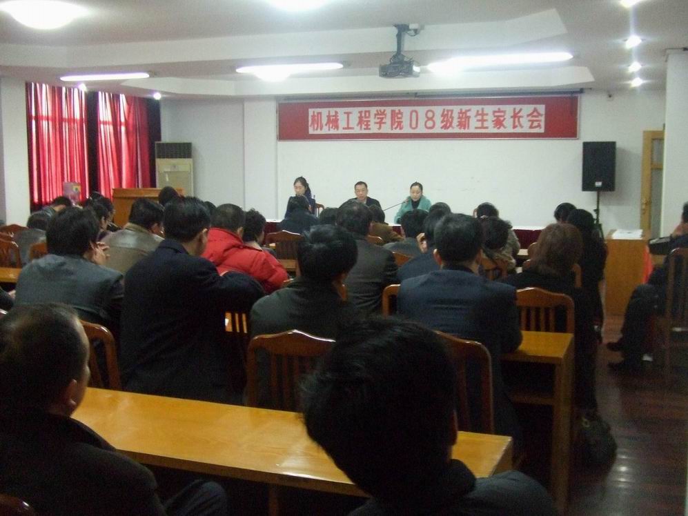 |  12月13日下午,机械工程学院在仙霞路校区综合楼525会议厅举行了2008级新生家长会。机械工程学院党总支书记姚黎明老师、党总支副书记虞蓉老师出席了会议。家长会由学院08级新生辅导员祝玥老师主持。所有辅导员及新生班主任也一同参加了会议。 姚黎明老师首先发表了热情洋溢的讲话。他首先代表学院党政领导对家长们在百忙之中能抽空前来家长会表示感谢。随后,他向家长们详细介绍了学校的历史沿革、教学资源、科研实验以及机械工程学院的发展现状、学科构成等情况。他希望家长们能与学校紧密配合,将同学们培养成为优秀的工程技术人才。接着,学院党总支部副书记虞蓉老师向家长们介绍了近年来学院学生工作的基本情况、08年就业情况、 学生奖惩的有关条例以及08级入校以来的基本表现。她指出大学四年是十分短暂的,她希望每位同学都能在学校里不断提高自己的综合素质,为踏入社会做好充分准备。最后,08级辅导员祝玥老师向家长们介绍了学校在资助贫困学生、优秀学生奖励等方面的政策和情况。她希望能和家长们一起共同努力,共同做好08级新生的工作,帮助他们顺利毕业。会后,家长们和班主任及辅导员老师积极的交流。 |
