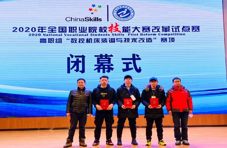 由教育部、天津市人民政府、山东省人民政府、国家发展改革委、科技部、工业和信息化部等17个部委联合主办的2020年全国职业院校技能大赛改革试点赛高职组赛项于11月28日至29日在山东济南工程职业技术学院举行, 来自全国29个省市共29支队伍参加了比赛。通过激烈的角逐,由我校高职学院机电工程系茹秋生、严伟龙、孙方、冯建明、谢真真、陈国振六位老师作为指导教师,刘林峰、吴鸿林、代宇豪3名同学组成的代表队获得了高职组“数控机床装调与技术改造”项目团体二等奖。
