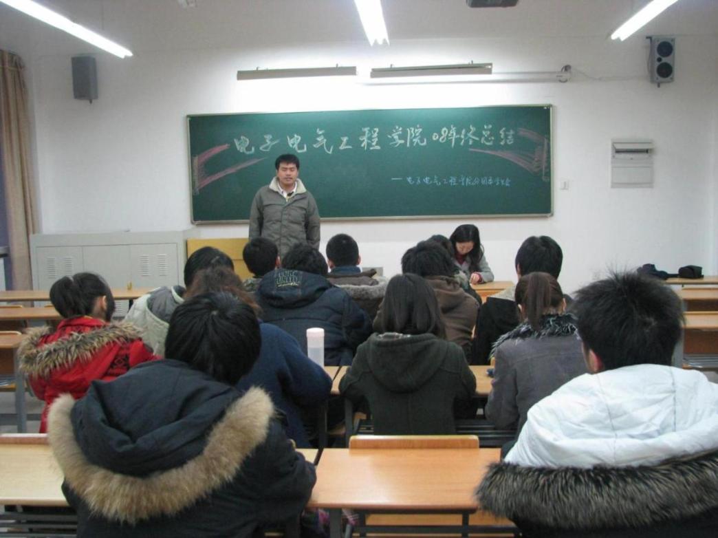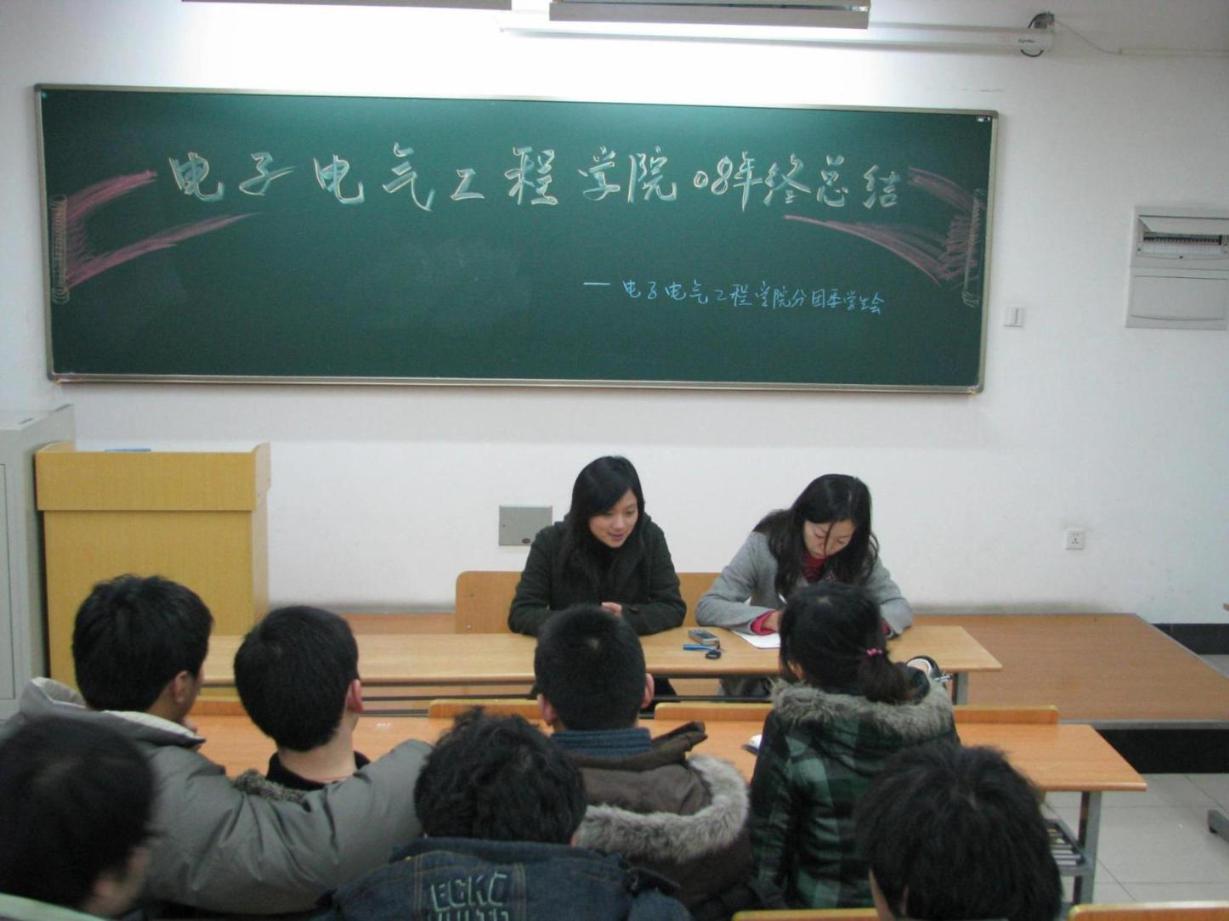 2009年1月12日下午,电子电气工程学院分团委学生会在教学楼B101召开2008年年终总结会。会议由学院分团委副书记唐倜同学主持,分团委书记梅元媛老师和所有部长级学生干部出席了此次会议。