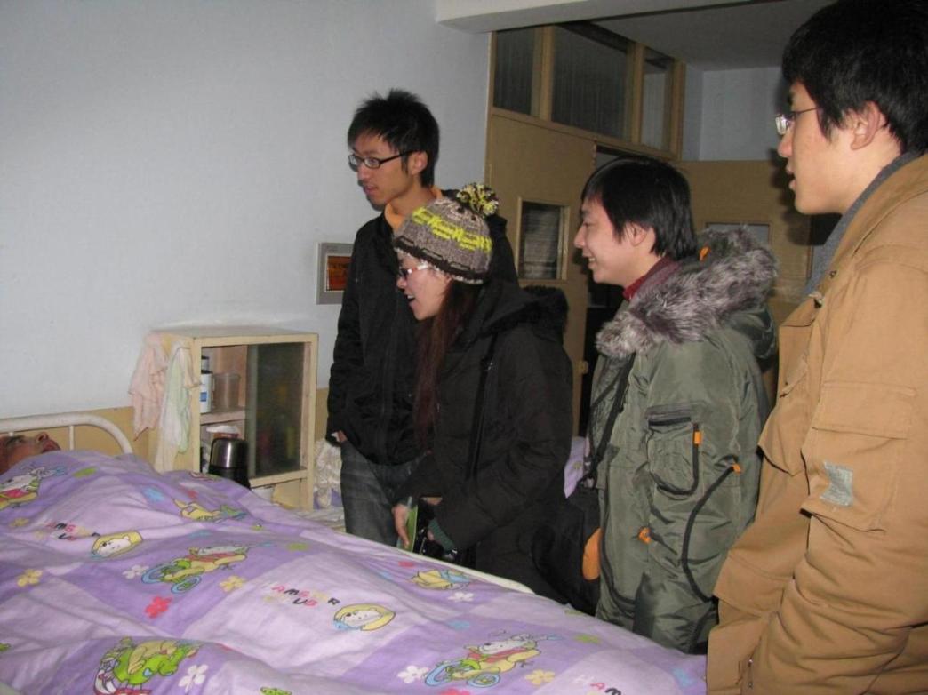 结束了第一家的慰问,管理学院师生立即忙不迭的赶往杨浦区的民星二村敬老院,带上水果和营养品前去探望了朱挺、朱国鸣两位病人。他们都是脑部运动神经出现了问题,腿脚不便,但是意识很清楚。见到大学生前来探望,他们非常高兴,兴起之下居然还开口唱歌给志愿者听。在一旁陪同的敬老院院长非常感谢工程大管理学院师生对走访工作的重视,他希望志愿者能常常去,给老人带来欢乐,也给敬老院带来生机。