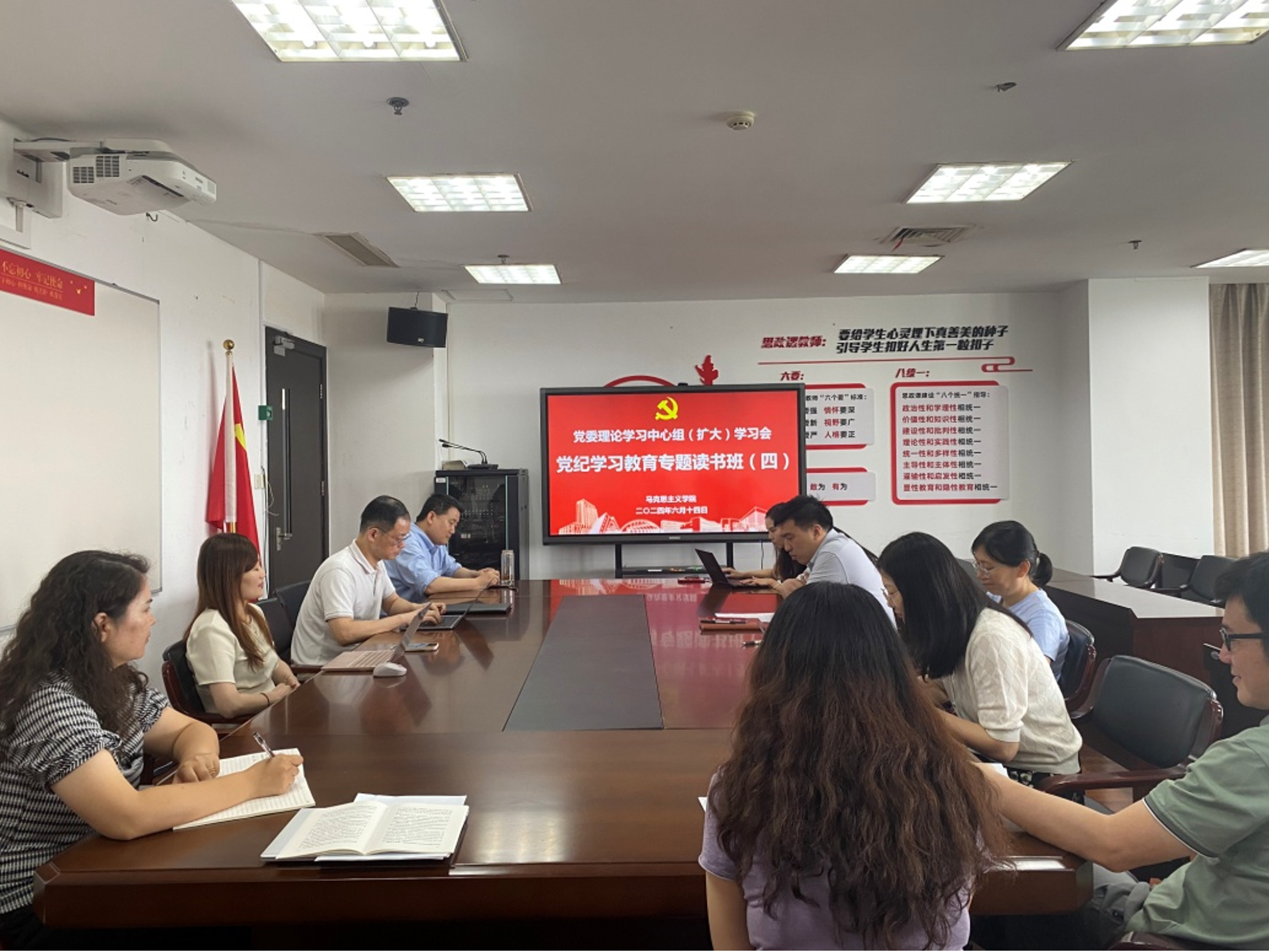 根据学院党委党纪学习教育工作安排,6月14日下午,马克思主义学院党委组织召开第四期党纪学习教育读书班,对《中国共产党纪律处分条例》(以下简称《条例》)中的第六章至第八章开展专题学习研讨。学院党委委员、教研室主任、组织员、教师代表参加学习,会议由学院党委书记董旖旎主持。