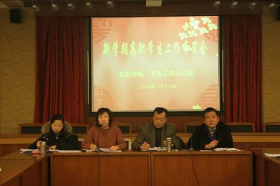 2月17日下午,高职学院在第二报告厅举行了《新学期学生工作布置会议》,学院党总支书记柳如荣、副书记汤正琴出席了会议,学工办全体人员、系部书记、专兼职辅导员、班主任参加了本次会议。