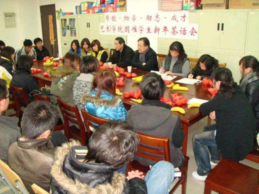 2月19日中午,艺术设计学院在学院学生办公室C111召开了“帮困·助学·励志·成才艺术设计学院困难学生新年茶话会”。全院30多名困难同学代表参加了此次茶话会,党总支书记潘惠德老师、院长马新宇老师以及学院全体辅导员老师出席了此次茶话会,会议由党总支副书记何志琴老师主持。 窗外寒风凛冽,但丝毫没有影响到茶话会上暖意融融的气氛,学院老师特地为参加茶话会的同学们准备了水果,同学与老师们围坐在一起谈理想、谈感悟,其乐融融,如同一个大家庭一般。会上,何志琴老师向与会的各位同学介绍了08年学院帮困助学工作,并且高度评价了受助学生在志愿者工作、献血、勤工助学等社会公益活动中的优异表现。0711061的盛秋琰同学和0711081的周礼君同学代表困难学生发言,他们的遭遇令人同情,但他们面对困难表现出的不屈精神感染了在座的所有同学和老师。 最后,院领导鼓励大家微笑面对生活,暂时的家庭贫困并不可怕。相反,贫困是一种财富,将会给予人以不懈努力的动力、高昂的斗志。不要自卑,勇敢的抬起头来与人交往,并且努力学习,追求进步,时时记得滴水之恩当涌泉相报。困难学生不要觉得孤独,学院老师会与你们同在。家长般的关爱,慈父般的叮咛深深感动了在座的每一位学生。 | |