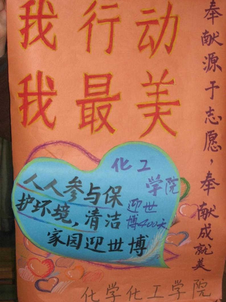 在上海世博倒计时400天即将到来之际,化学化工学院分团委积极响应校团委号召,以科学发展观为统领,积极组织筹划迎世博400天系列活动。以“我行动,我最美”为口号的主题活动将贯穿整个3月,包括“专项志愿者服务进校园”、“城市环保主题宣讲进社区”、“世博礼仪知识进寝室”等活动,旨在增强学生世博主人翁意识,提升环保、节能理念。 稿件作者:化学化工学院责任编辑:陈文琼