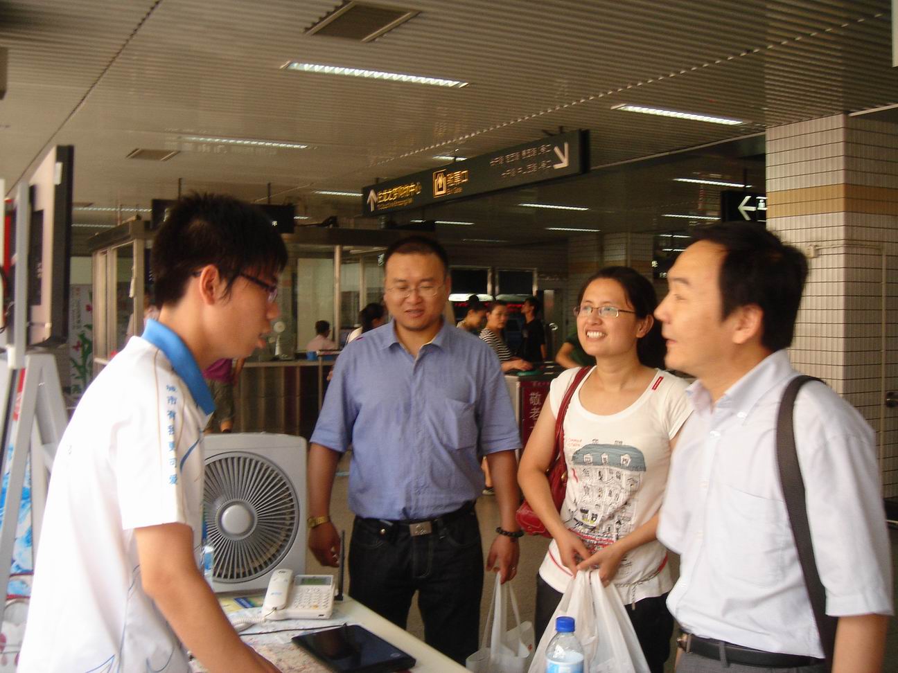 7月30日上午10点,城市轨道交通学院院长柴晓冬老师、院党总支副书记徐建华老师在分团委书记万慧琳老师及世博志愿者工作组的陪同下,前往轨道交通2号线、3号线、11号线五个城市文明站点,慰问我院世博志愿者。 柴院长亲切地与每位志愿者握手,关切地询问志愿者的工作情况,在饮食、交通、安全、防暑等问题上进行了特别详细的了解,给志愿者带去了温暖和力量,志愿者们也向学院领导介绍了自己所服务站点的基本情况和做志愿者的体会感想,院领导对志愿者不怕苦、不怕累的奉献精神予以高度赞扬,也对他们志愿服务社会的行为表示支持和鼓励。 最后,学院领导向奋斗在高温下的志愿者送上了亲自挑选购买的水果、点心、清凉油等慰问品,再次提醒志愿者注意身体,做好防暑降温工作,并鼓励他们在今后的志愿服务中能够继续保持和传承工程大学子奉献、友爱、互助的精神和风采,为世博会贡献出自己最大的力量。 |