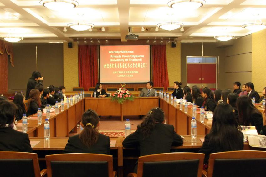 2009年3月4日,泰国艺术大学教育学院师生一行40人来到高职学院进行参观访问,学院胡宁副院长热情接待了远道而来的客人。 胡宁副院长首先代表学院对泰国艺术大学的师生表示了热烈的欢迎,并向泰国朋友简要介绍了学院的历史、办学情况、所设专业及学生的就业现状。泰国艺术大学艺术学院院长介绍了他们的教育体制和教育情况。胡宁副院长代表学院向对方赠送了高职学院55周年纪念册和礼品,对方也回赠了一副水彩画做为纪念。泰国的朋友还分别参观了技能楼实训中心和图书馆,所到之处都引起了泰国师生的极大兴趣。参观结束后,双方共同在综合楼前合影留念。 | |