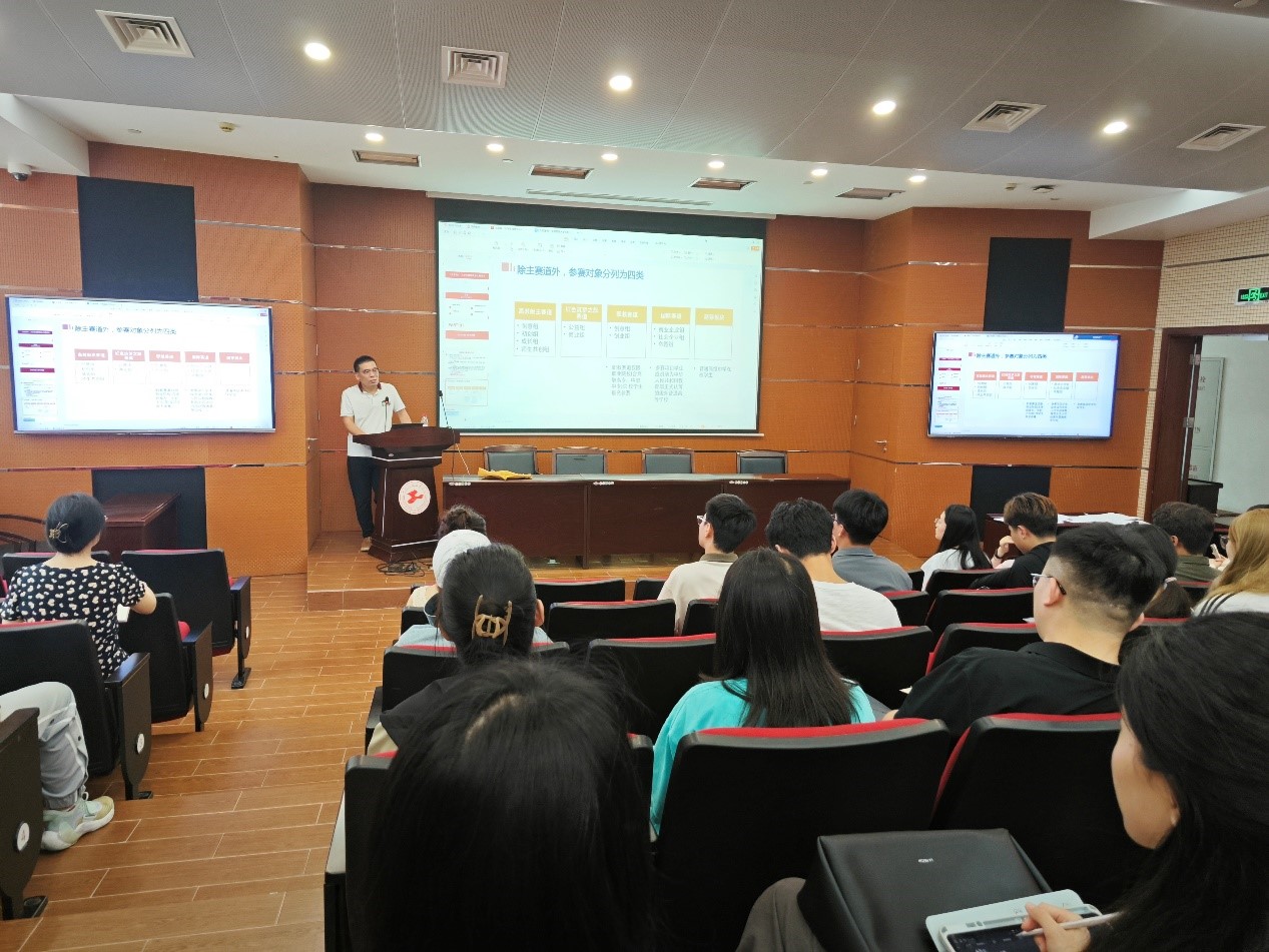 李云飞结合多年的大赛指导和评审经验,对“中国国际大学生创新大赛(2024)”的变化部分进行阐释,对大赛的规则和评分标准进行了深入的解读;详细介绍了计划书封面、市场(用户)痛点、解决方案(产品与服务)、市场分析、竞争分析等方面,并对每一部分都给出了具体且实用的建议。培训最后,同学们积极踊跃地提问,李老师耐心仔细地回答了每一位同学的问题,同学们都表示受益匪浅。