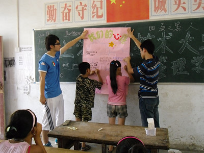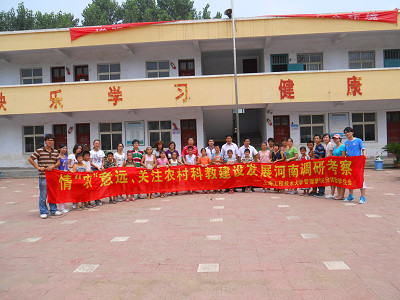 爱心奉献 情系农村 27日,行程第二天一早,团队发车一同前往许昌市颍阳镇第八中心小学。虽然,天气炎热,车厢颠簸,团员们却早已抑制不住内心的期待,在这个学校里的考察走访活动令所有人印象深刻。 当一行人来到目的地时,被眼前简陋的校园、教室所震惊。在校长的带领下来到教室,看到了早已等候在座位上的孩子们。实践部部长金璐首先向孩子们阐述了此次活动的主要内容和意义。随后由学院分团委副书记黄梦婷担任讲解员为孩子教授了一堂以“You and me”为主题的世博小知识课程,期间穿插了简单有趣的英文歌曲和小游戏。考察团成员们也纷纷坐在教室里与这些孩子一起感受,用镜头记录下他们的笑脸。在与孩子们交流的过程中,一开始他们略显生疏。在团员们用心和鼓励下,以亲和力让孩子们逐渐打开心扉,双方建立起了友谊的桥梁。团员们以此次考察主题为线索,就农村农民工子女的受教育情况、农村小学建设发展对其进行访问和调查。  大朋友带着小朋友还来到操场玩起了趣味游戏,太阳火辣辣的,但是活动的气氛也越来越热烈。为进一步了解农村孩子,考察团还专门设计了以“我们的心愿”为主题的海报,孩子们纷纷上台,写下了最真实的愿望。其中有很多都写下“要来上海参观世博会”的心愿。最后团队代表上海工程技术大学管理学院对当地小学捐赠了“爱心书包”。记者随即采访了几位小朋友,从他们可爱的笑容中我们读到了一种被关注的快乐,“新书包很漂亮,我觉得很开心”。   探求农村建设 体验当地生活 7月28日,行程第三天,考察团走访了谭庄村农家,一位农家奶奶热情的招待了团员们。在与村干部的交流中,团员们认真学习了解当地农村建设的各方面问题,积极提问,并有的放矢的完成了调查问卷。随后,团员们在当地居民的带领下,实地参观了农地与整个村落,走问了多家农户,得到了该村的一手数据。考察团主要了解的是农村村民的外出打工情况,农村孩子的受教育情况等。团员们第一次亲身感受农村不同于城市的气息,也感受到了何为面朝黄土背朝天的农村生活。  跟随历史脚步 感受时代发展 7月29日,行程的最后一天,团员们参观了“一步规划”的郑东新区以及河南博物馆。河南拥有着黄河文明,悠久的历史文化让考察团的成员们感受到,在从古至今历史沿革的变化发展中,人们生活的进步与变化。 四天的考察行程紧凑而有意义。农村是一个为学生容易忽视的地方,然而作为祖国的年轻一代,有责任和义务去了解农村,将学生力量渗透到社会主义新农村、和谐社会的建设中去。此次社会实践活动不仅让管理学院的同学们看到感受到了科教兴农的意义、农村学校环境的艰苦、农村孩子读书的不易、农村发展建设的局限性,更让同学们深思自己身上所肩负的责任和使命。
