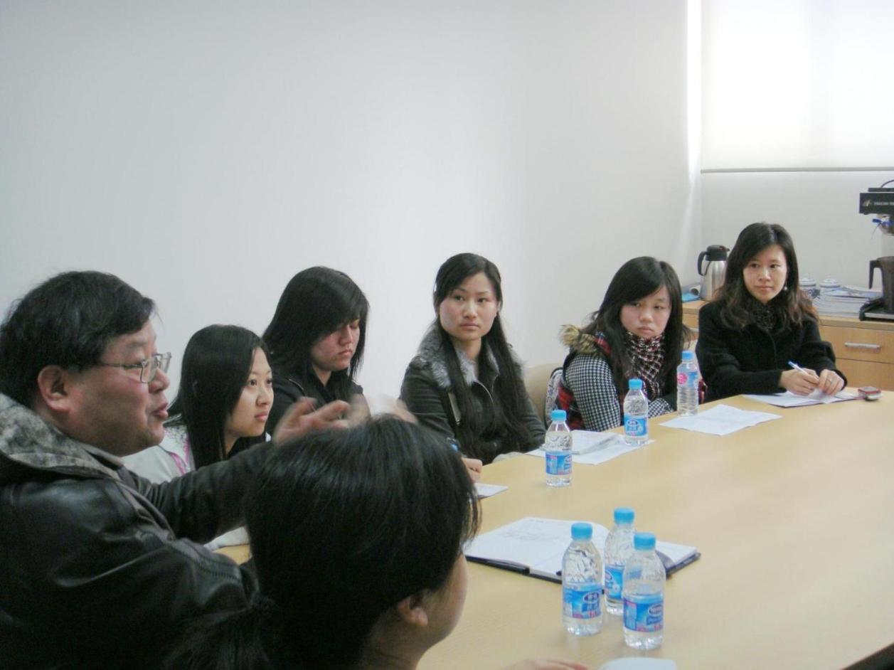 上海纺织科学研究院是服装学院产学教育合作基地,在2009年产学合作教育《大学生科研训练计划》项目中,有2项正是上海纺织科学研究院起头带领学生做的。此次会面旨在让项目申请人学生方及指导教师双方见面,并就《上海纺织现状分析》、《2008-2009纺织外贸市场调研(近5年数据)》两个课题作简单介绍和任务的部署。