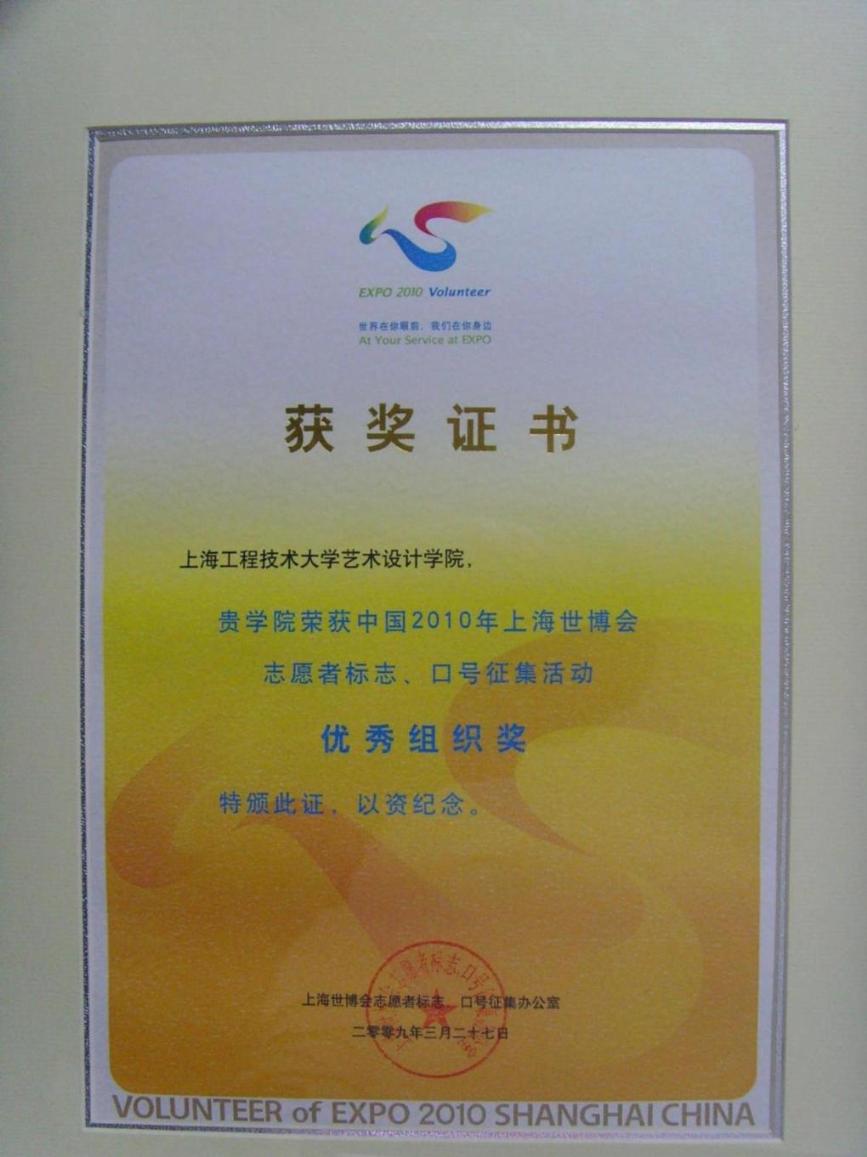 |  日前,“中国2010年上海世博会志愿者标志、口号征集活动颁奖仪式”在上海世博局举行。上海工程技术大学艺术学院获得2010年上海世博会志愿者标志设计优秀组织奖,同获此殊荣的还有中国美术学院、上海交通大学、上海戏剧学院、清华大学美术学院等6所高校。  2007年12月5日,上海世博会事务协调局面向全球公开征集中国2010年上海世博会志愿者标志、口号。此项活动得到了国内外的广泛关注,社会公众纷纷通过配合宣传、绘稿参与、参加公众意见征询等方式,表达对上海世博会的良好祝愿和对世博会志愿服务的热情。我校艺术设计学院积极参与,由李雅老师指导王洁等60多位广告系同学,共投出志愿者标志设计稿150份。 | |