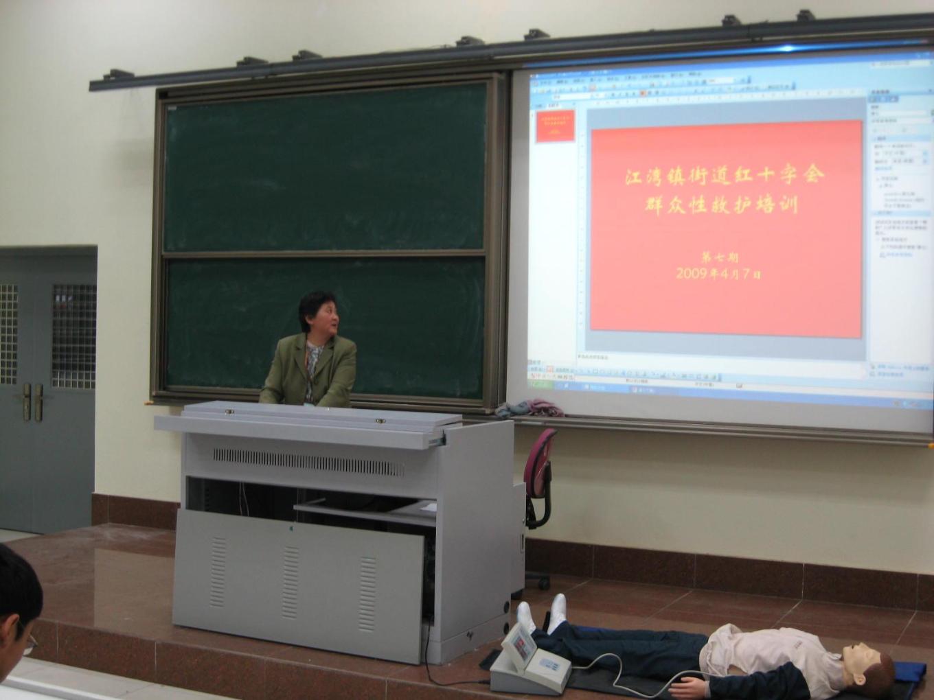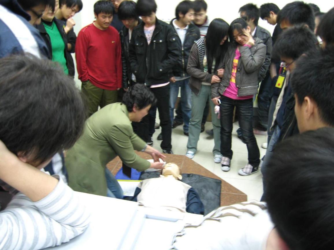 为落实上海市政府实事项目,根据虹口区红十字会2OO9年迎“世博”实际行动要求,完成在区居民中培训救护员1967名、普及员15767名的任务,从而为虹口区建立三级救护网络初步打下基础。按照统一部署,上海工程技术大学高职学院与辖区江湾镇街道爱卫会合作培训救护员60名、普及员350名。本着迎“世博”、你我共同参与和不影响教学工作的原则,让市民和学生更多地了解和掌握初级救护知识和技能,结合学院实际情况,学院相关部门经过密切配合联合对部分学生和职工进行了培训。