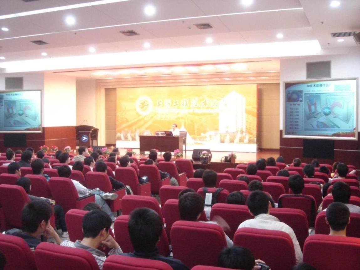 4月21日下午,材料工程学院在图文信息中心第二报告厅举行了题为《三维数字化制造技术在先进制造业的应用》的讲座,主讲人为国家科技部国家制造业信息化三维数字化技术认证培训中心技术中心主任霍有朝研究员。我校是20093D—CAD—VR技术全国百校系列巡回讲座中的一站。讲座吸引了包括材料工程学院、汽车工程学院、机械工程学院等学院在内的260多位师生。讲座内容包括三维数字化技术的最新应用与发展,在企业中成功应用案例,技术人才就业导向以及全国三维数字化创新设计大赛等。讲座期间现场气氛活跃,互动性强,针对主讲人提出的一系列问题,师生们展开了热烈的讨论,为了鼓励大家踊跃思考、一起探索,主办方对于回答正确的学生给予了小礼品的奖励。报告持续了近2小时,会后还有许多师生围绕着三维CAD技术向与会的各位专家进行了咨询。